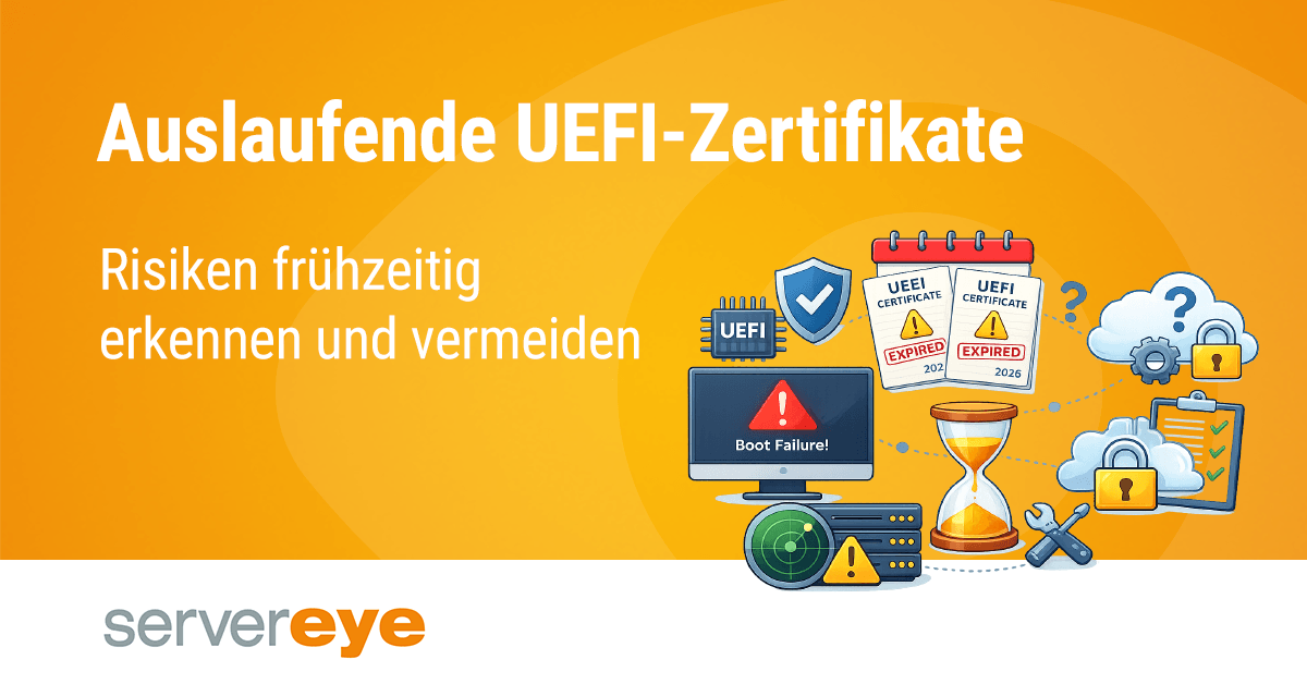 BlogBeiträge & News Kategorie auswählen Managed Services Neuigkeiten Rund um servereye Sensoren Success-Stories Wissenswertes Auslaufende UEFI-Zertifikate: Warum jetzt Handlungsbedarf besteht20. April 2026 Dein Zugang zu KI – schnell, sicher und datenschutzkonform27. März 2026 Souveräne IT statt Abhängigkeit: Was Unternehmen jetzt brauchen26. März 2026 Sicherheit ohne Suchaufwand – Wie automatisierte Firewall-Updates den IT-Betrieb nachhaltig vereinfachen11. Februar 2026 Ausgezeichnet ins neue Jahr 2026: servereye ist die Nr. 1 RMM-Plattform für MSPs & Reseller3. Februar 2026 Kennst Du schon unseren Veeam Backup & Replication Status Überprüfung Sensor?11. Dezember 2025 Smart Updates in servereye: Die einfachste Lösung für aktuelle Windows-Systeme21. November 2025 Managed Deploy: Softwareverteilung einfach, flexibel, automatisiert12. November 2025 Fast Contact KI von servereye: einfache, sichere KI für jedermann5. November 2025 Neues Inventarisierungs-Dashboard – mehr Überblick, weniger Aufwand!31. Oktober 2025 Entdecke die neue kontextsensitive Hilfe im Automation Planner und Fast Contact29. Oktober 2025 Partnertag 2025: servereye bringt KI auf jeden Arbeitsplatz – sofort nutzbar, einfach integriert22. September 2025