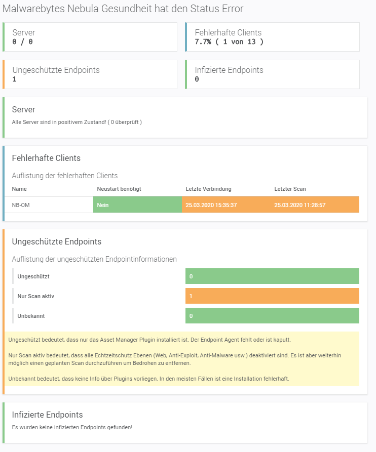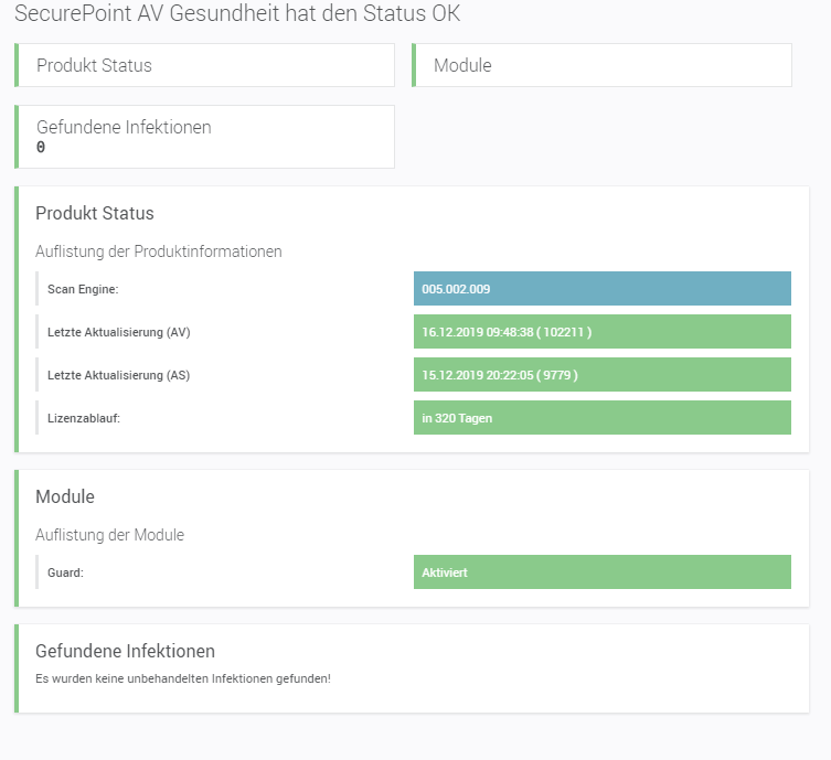 Viele haben sich den Sensor gewünscht und wir haben alle Möglichkeiten geprüft und es geschafft, einen Sensor für das auf Ikarus basierte AV zu erstellen. Der Sensor überprüft dabei Updatestand, Modulstatus und unbehandelte Infektionen. Sollte der Ikarus AV im Einsatz sein, kann dieser Sensor ebenfalls genutzt werden.