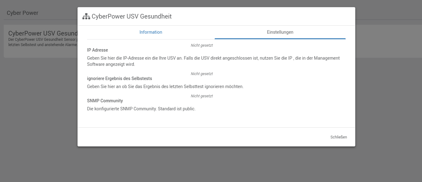 Der Sensor ist unter dem Namen „CyberPower USV Gesundheit“ im Sensor Market zu finden.
