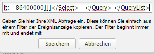 Legen Sie nun in servereye auf dem entsprechenden System den Sensor „Ereignisanzeige Abfrage“ an und kopieren Sie das XML in die Einstellung „Abfrage“