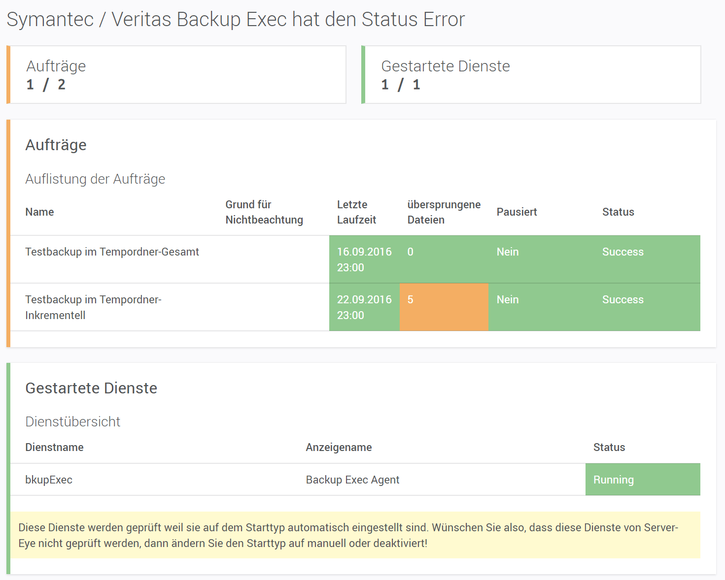 Backupstatus für Symantec/Veritas BackupExec®