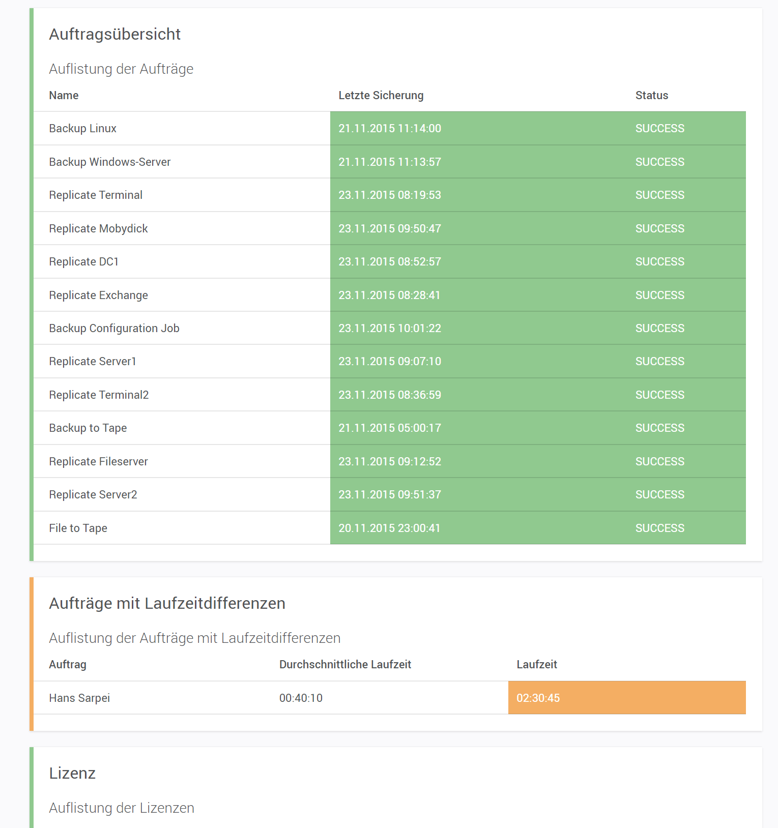 Hauptmerkmale des Backupstatus für Symantec/Veritas BackupExec® Sensors: