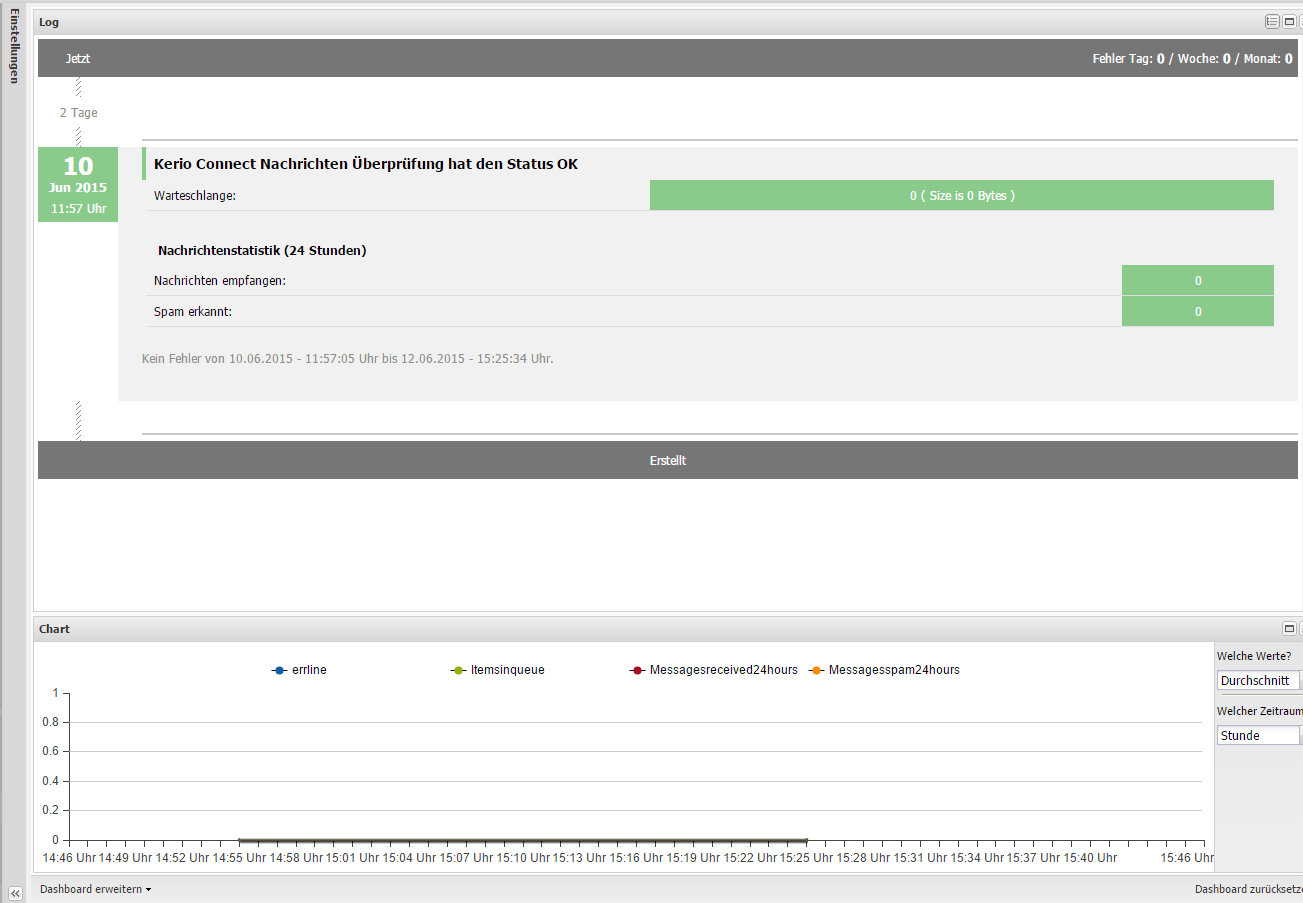 Kommen wir nun zum zweiten Kerio Sensor, die „Nachrichtenübersicht für Kerio® Connect“.