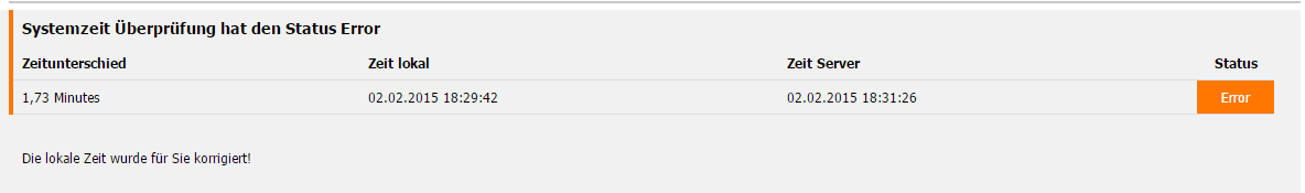 Sobald eine Abweichung vorliegt, erhalten Sie eine Fehlermeldung und die Information das die Zeit automatisch für Sie korrigiert wurde. So können Sie sich protokollieren lassen wie häufig eine Korrektur vorkommt. Sollte es dann wirklich öfters zu Zeitkorrekturen kommen, macht es Sinn die automatische Korrektur per Einstellung zu deaktivieren und auf dem System auf Problemsuche zu gehen.