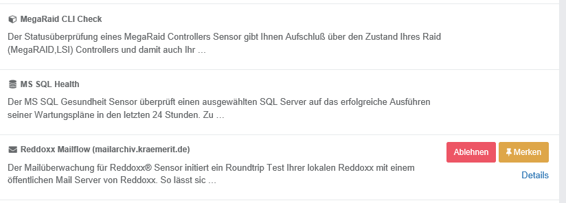 Wie so ein Vorschlag aussehen kann, sehen Sie auf folgendem Bild wo zum Beispiel die Reddoxx Mailarchivierung erkannt wurde:
