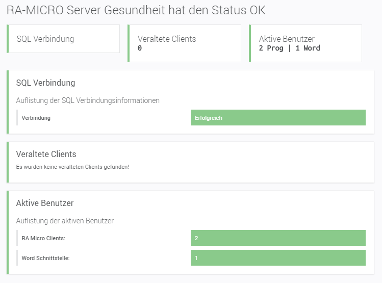Um die Lizenzbedingungen zu überprüfen, wertet der Sensor die aktiven Nutzer des RA-MICRO Clients aus – getrennt auch nach der WORD Schnittstelle. So kann aktiv überwacht werden, ab wann die Lizenzgrenze erreicht wird und demnach proaktiv gehandelt werden kann.