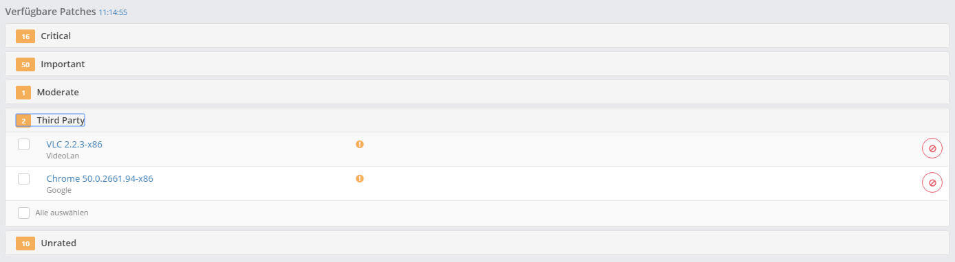 Die Drittanbieter Patches sind als neue Kategorie „Third Party“ in Ihrer gewohnten Patchmanagement Oberfläche verfügbar, werden per normalem Scan gefunden und können auch normal via Oberfläche geplant und installiert werden.