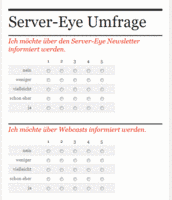 Wie Sie schon wissen entwickelt sich servereye kontinuierlich weiter. Es ist jedoch auch wichtig, dass Sie die Informationen auch erhalten. Mit unserer servereye Umfrage möchten wir mit Ihnen gemeinsam einen Weg finden wie wir Sie in Zukunft am besten über Neuerungen von Sensoren, Features und Updates informieren.