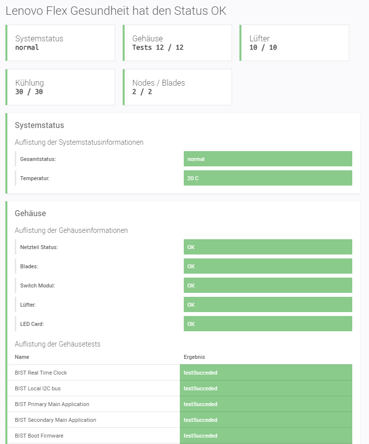 Neben unseren wichtigen Sensoren für Lenovo Server ( über den xClarity Controller ) vergessen wir aber auch die Storages nicht. Mit dem Lenovo Flex Sensor kannst Du das Enterprise Flex Chassis auf all seine wichtigen Komponenten überwachen. Dazu gehört natürlich der Gesamtstatus, Status zu Lüftern / Kühlung, Netzteilen und den verbauten Blades. Somit werden rechtzeitig kritische Ausfälle alarmiert und aufgezeigt.