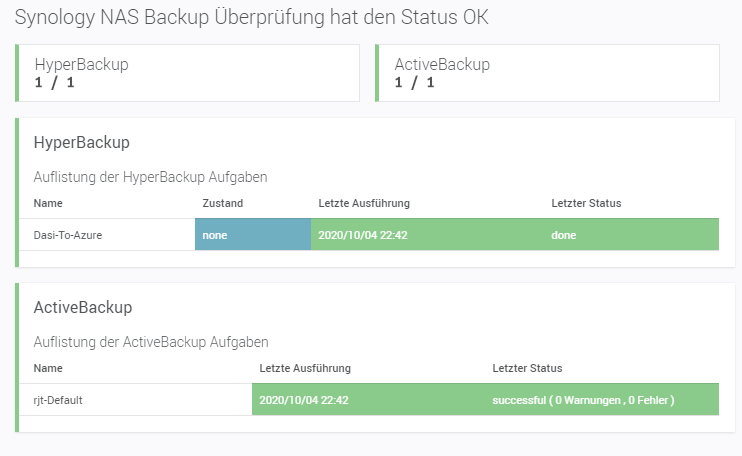 Backupüberprüfung für Synology NAS