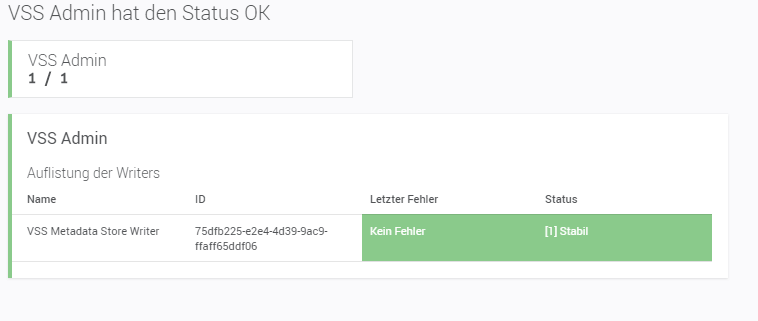 Überwacht die Schattenkopien „Writer“ auf ihren Status. Gerade im Backupumfeld ist es wichtig, auch Fehler im Vorfeld einer Sicherung zu erkennen, da viele Produkte direkt auf die VSS Features von Microsoft aufsetzen. Mit unserem Sensor kann man Probleme bei den „Writer“ direkt erkennen und so vor dem täglichen Backup schon die richtigen Schritte zur Behebung einleiten.