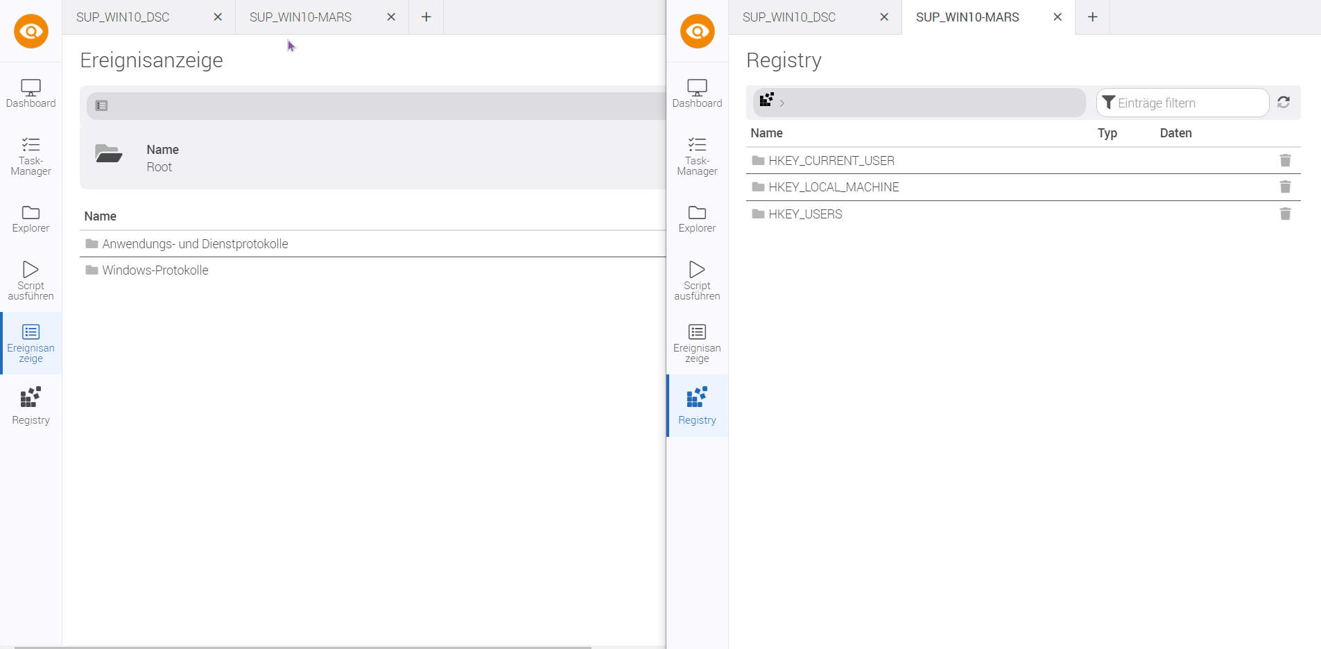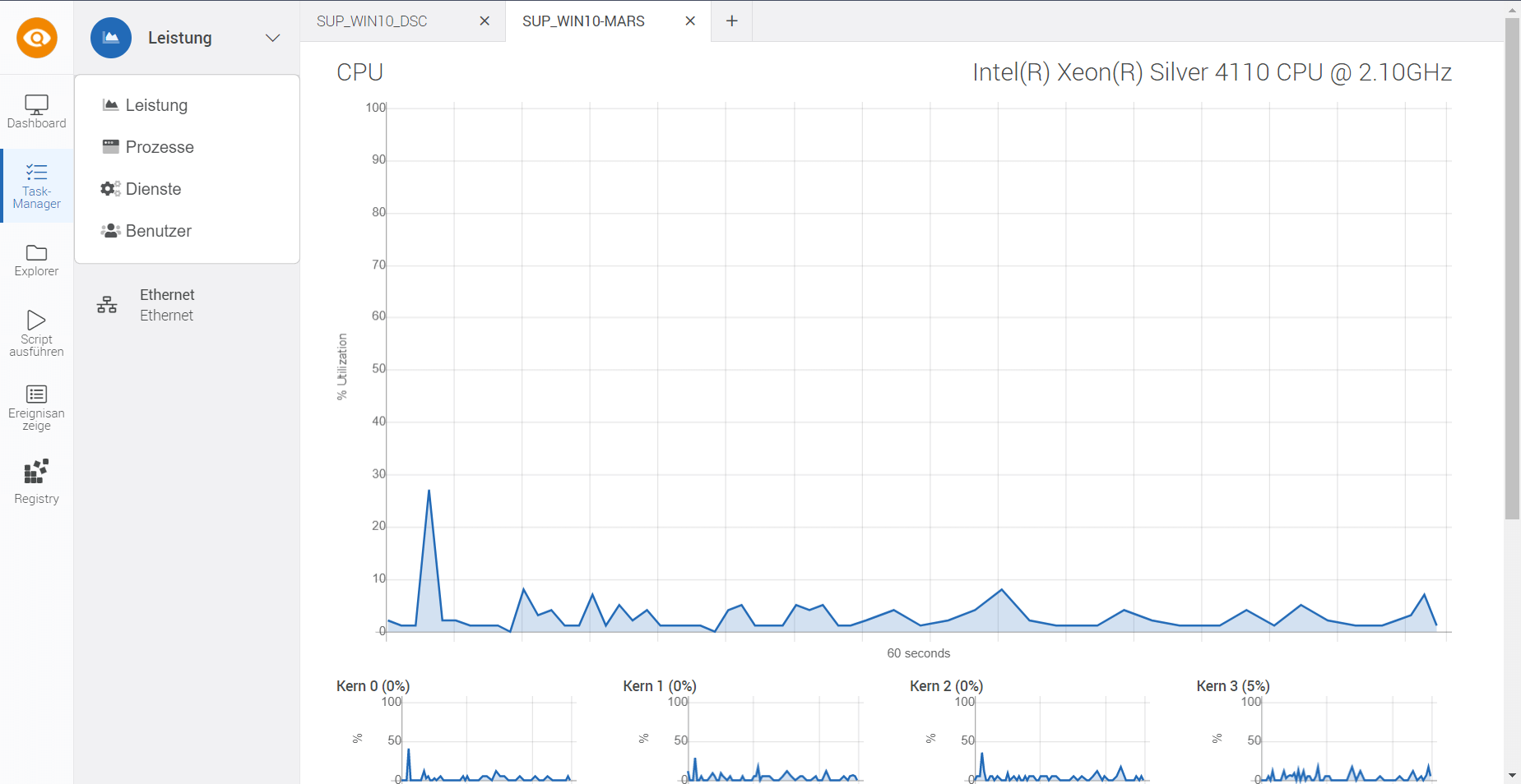 Der Schlüssel zu dieser Effizienz liegt in der Bereitstellung eines zentralen Cockpits für den Supporter. Er kann Ressourcen effizienter verwalten, Engpässe identifizieren und gezielt Maßnahmen ergreifen, um die Leistung zu optimieren. Neben der Nutzung des Task-Managers, ermöglicht es zusätzlich den Zugriff auf Laufwerke, Registry, Ereignisprotokolle und mehr in Echtzeit – es bildet eine umfassende Palette von administrativen Funktionen, die dem Supporter ermöglichen, schnell und präzise zu handeln.